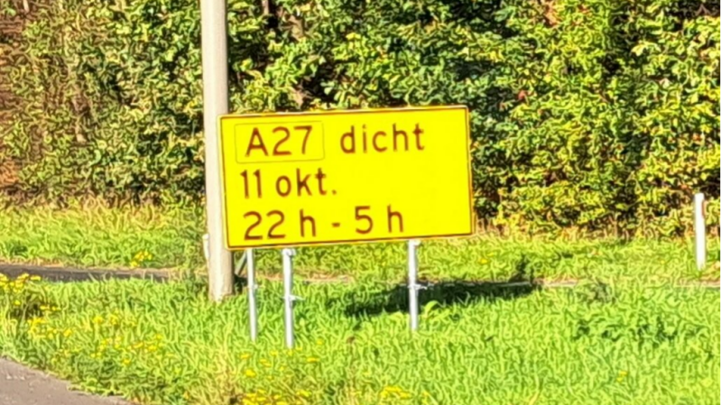 A27 - In de nacht van 11 oktober op 12 oktober is de A27 afgesloten tussen knooppunt Hooipolder en knooppunt Gorinchem in de richting van Utrecht.