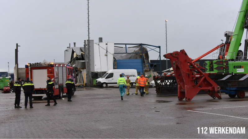 Toen de kraan begon te kantelen bevonden zich nog mensen in de loods en rond de machine. Zij konden gelukkig op tijd wegkomen. Er vielen geen gewonden.