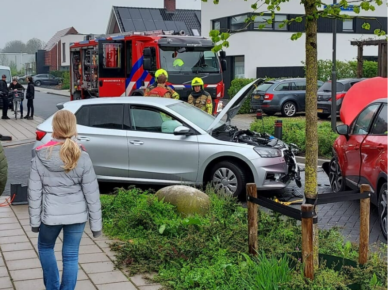 De brandweer werd met spoed opgeroepen voor een voertuigbrand. Bij aankomst bleek het te gaan om een botsing op een kruising in een woonwijk. Beide voertuigen liepen flinke schade op. Van brand bleek geen sprake.