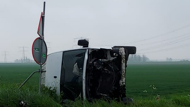Een bestelbus en een personenauto kwamen frontaal in botsing. De 19 jarige bestuurder van de bus werd uit zijn voertuig geslingerd en raakte zwaargewond. De bus kwam op zijn zijkant op het fietspad terecht en raakte zwaar beschadigd.