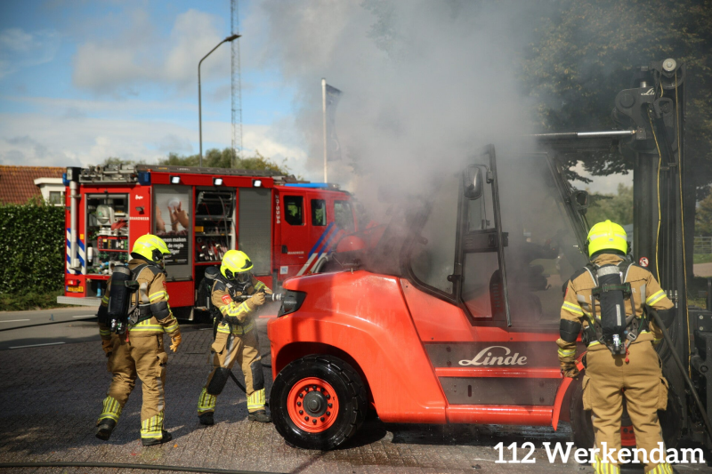 Werkendam - Vrijdagmiddag 22 september omstreeks 12.00 uur was brand ontstaan in een heftruck aan de Biesboschhaven Zuid in Werkendam.