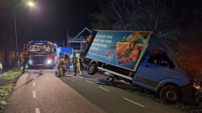 Werkendam - Maandagavond 4 maart 2024 rond 20.55 uur rolde een bakwagen van supermarktketen Albert Heijn gedeeltelijk van de Werkensedijk.