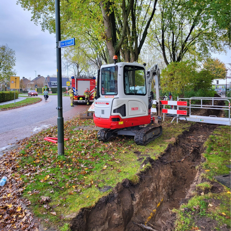 De lekkage ontstond tijdens graafwerkzaamheden. De brandweer hoefde dit keer niet ver te rijden. De werkzaamheden vonden namelijk op loopafstand van de brandweerkazerne af. Brandweerlieden hebben de situatie gecontroleerd en veiliggesteld in afwachting van de netbeheerder.