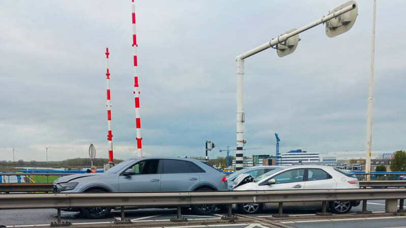 Vier automobilisten raakten betrokken bij een kettingbotsing aan het begin van de Merwedebrug. Dit zorgde veel schade en er ontstond direct een verkeersopstopping. Over de toestand van de betrokkenen is niets bekend. Een bergingsbedrijf heeft de beschadigde voertuigen afgesleept. De politie heeft de oorzaak van het ongeval onderzocht.