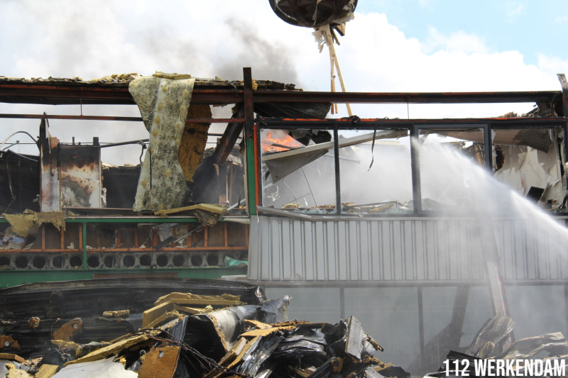 De brandweer van Werkendam en Sleeuwijk zijn vandaag en gisteren verschillende keren uitgerukt om na te blussen. Dit is omdat het pand van binnen nog steeds warm is en omdat door de wind het dak nog is gaan smeulen.