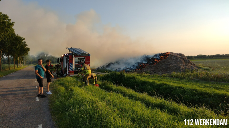 22/07/2021 - Werkendam - De Werkendamse brandweer is donderdagavond iets voor half 9 uitgerukt naar de Grote Waardweg in Werkendam. Ter plaatse bleek er een grote hooiberg in de brand te staan. De brandweer maakt de hooiberg nu goed nat.